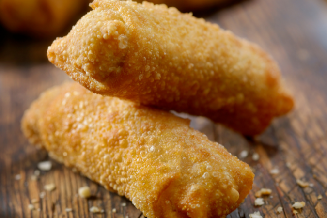 Hearty egg rolls filled with meat and veggies—crispy, savory, and satisfying.