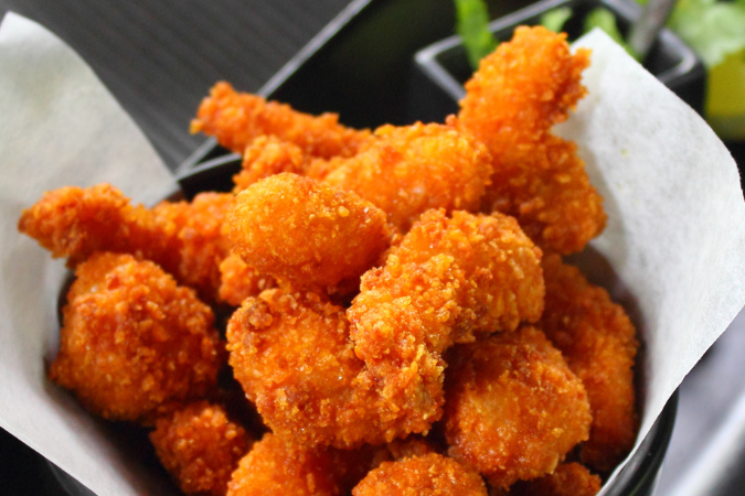 POPCORN SHRIMP Categories: SEAFOOD Crispy bite-sized shrimp seasoned and fried. A perfect light snack or seafood starter. $7.99